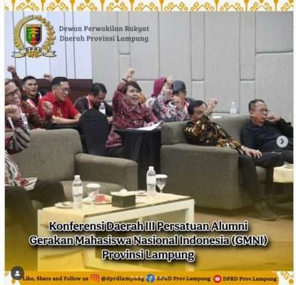 Lampung, Dutalampungi.com – Anggota Komisi V DPRD Provinsi Lampung, Budhi Condrowati, SE., M.Si. menghadiri acara pembukaan Konferensi Daerah III Persatuan Alumni Gerakan Mahasiswa Nasional Indonesia (GMNI) Provinsi Lampung. Bertempat di Aston Hotel Lampung. Sabtu, 23/8/2025.