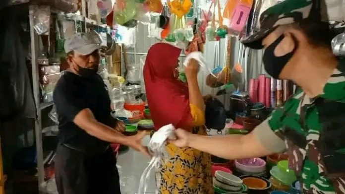 Jawa Tengah, ( Duta Lampung Online) – Anggota Babinsa Koramil 17/Puncakwangi dikerahkan pimpinan untuk melaksanakan kegiatan lapangan memberi himbauan prokes. Pembagian masker dan penyuluhan serta melaksanakan edukasi kepada pedagang serta pengunjung pasar tentang pentingnya penerapan protokol kesehatan.