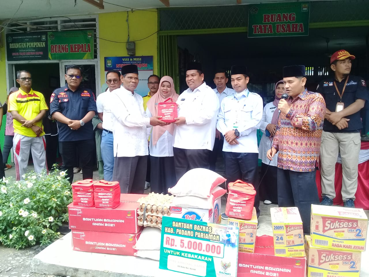 Padang ( Duta Lampung Online)- Sungai sariak Bupati Padang Pariaman melalui Dinas Sosial Pemberdayaan Perempuan dan Perlindungan Anak (Dinas Sosial P3A) Kabupaten Padang Pariaman beserta BAZNAS Kabupaten Padang Pariaman bertindak cepat memberikan bantuan atas kejadian yang menimpa kebakaran Pondok Pesantren Nurul Yaqin Ambuang Kapua Sungai Sariak Kecamatan VII Koto 28/09/22 yaitu dengan memberikan bantuan uang tunai dan logistik untuk pemenuhan kebutuhan dasar agar tidak menimbulkan masalah sosial lainya pasca terjadi kebakaran.