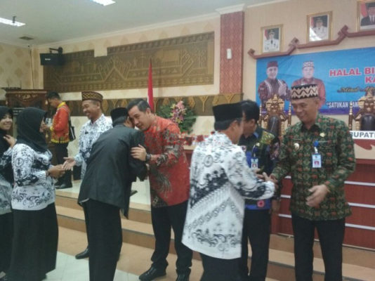 Dalam acara halal bilalal tersebut juga dilakukan dialog terbuka antara Bupati dan anggota PGRI diantaranya terkait sumbangan dan pungutan dari sekolah kepada para siswa atau wali murid.