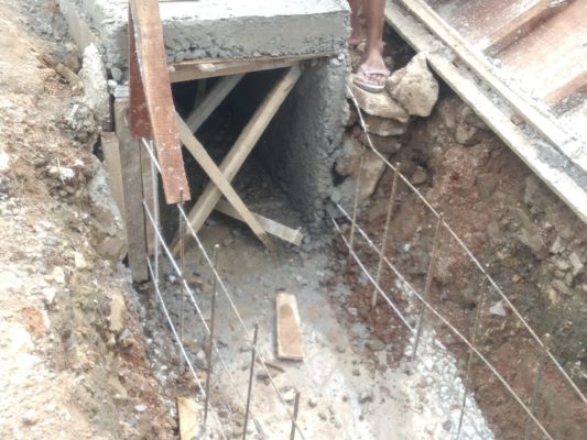 Bisa dipastikan, pekerjaan tersebut tidak akan bertahan lama karena dinding talud beton bisa mudah rubuh saat plat beton tergeser roda mobil, karena ketebalan beton hannya setebal tempe.