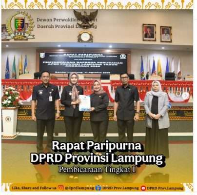 Lampung, Dutalampung.com –  Bertempat di Ruang Rapat Paripurna DPRD Provinsi Lampung. Senin, 11/8/2025. Rapat Paripurna DPRD Provinsi Lampung Pembicaraan Tingkat I dalam rangka :