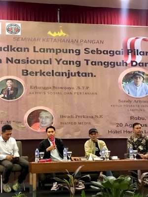 Hal itu ia sampaikan saat menjadi narasumber dalam Seminar Ketahanan Pangan yang digelar oleh Pos Raya Indonesia – Lampung di Hotel Horison, Bandar Lampung, Rabu (20/8) pukul 09.00–13.00 WIB.
