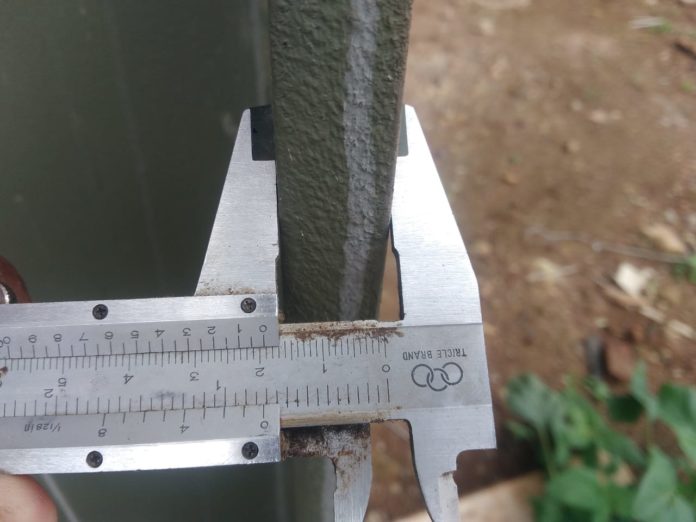 Namun berdasarkan investigasi dilapangan pihak pemborong hannya menggunakan besi tiang kolom dengan ukuran 400.400.1319. Sehingga bisa kita pastikan pada pekerjaan tersebut terdapat selisih harga besi kolom pada K1 dan K2 dengan ketentuan RAB sejumlah 79 batang tiang kolom, menggunakan bahan baja ketebalan 3mm X2=6mm, dengan asumsi baja H Beam kolom 6.120,29 kg, dikali nilai harga baja pada satuan analisa terpakai sejumlah 28.000/kg maka ditemukan jumlah total Rp.171.368.120. Belum lagi untuk biaya terhadap upah pekerja.