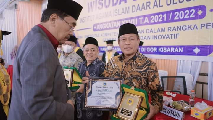 Pada kesempatan tersebut Plt Wali Kota Waris yang juga merupakan alumni lAIDU Asahan, turut menerima penghargaan Cinderamata, usai memberikan sambutan dan motivasinya.