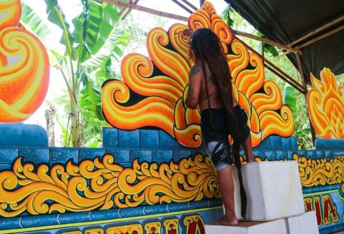 “Jika rata-rata pilar tebeng Ketoprak berwarna hijau dan kuning, maka Dutha Budaya bernuansa biru dan kuning. Supaya Dutha Budaya punya identitas sendiri tidak sama seperti Ketoprak lain,” Kata Om Bonar.