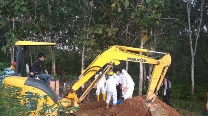 Untuk mengantisipasi adanya virus Corona, petugas memperlakukan tata cara dan proses pemakaman mayat tersebut juga menggunakan prosedur Covid 19.