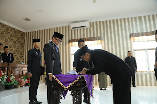 Diketahui, pada acara tersebut Bupati Adipati melantik Drs. Nuryadin Ali Mustofa dari Jabatan lama sebagai Kepala Bidang Pembinaan Pendidikan Dasar Dinas Pendidikan dan Kebudayaan dengan Jabatan baru sebagai Kepala Satuan Polisi Pamong Praja, selanjutnya Tonis, S.H dari Jabatan lama sebagai Sekretaris Dinas Pekerjaan Umum dengan Jabatan Baru sebagai Staf Ahli Bupati Bidang Pembangunan, Ekonomi daan Keuangan Setdakab dan Edwin Bavur, S.Sos dari Jabatan lama sebagai Kepala Bagian Humas dan Protokol dengan Jabatan Baru sebagai Kepala Dinas Koperasi dan UKM.(Alex)