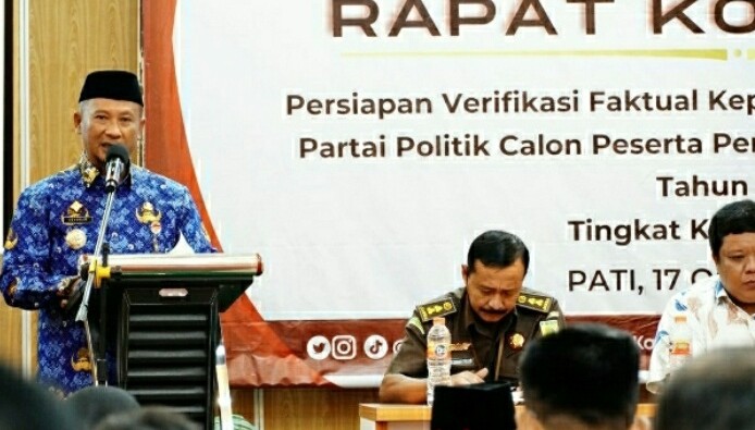 Pati ( Duta Lampung Online)-PJ Bupati Pati Penjabat (Pj) Bupati Pati Henggar Budi Anggoro secara resmi membuka rapat koordinasi (Rakor) verifikasi faktual kepengurusan dan keanggotaan partai politik calon peserta Pemilu anggota DPR dan DPRD tahun 2022, tingkat Kabupaten Pati, di Hotel New Merdeka, Senin (17/10/2022).