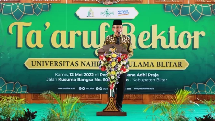 Blitar, (Duta Lampung Online)- Universitas Nahdlatul Ulama (UNU) Blitar menggelar Ta’aruf Rektor pada Kamis (12/05/2022). Kegiatan ini dilaksanakan untuk menyambut kedatangan rektor baru UNU Blitar, yaitu Prof Moh Mukri yang resmi dilantik pada 22 April 2022 lalu di Gedung Pengurus Besar Nahdlatul Ulama (PBNU) Lantai 8, Jakarta. Kegiatan Ta’aruf Rektor ini dipusatkan di Pendopo Sasana Adhi Praja, Kantor Pemerintah Kabupaten (Pemkab) Blitar, Kecamatan Kanigoro, Kabupaten Blitar.