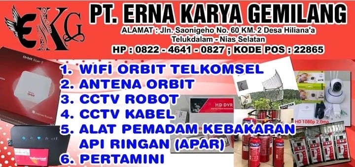Nias (Duta Lampung Online) PT Erna Karya Gemilang Nias Selatan Kec. Teluk dalam, Kab. Nias Selatan, Sumut, menyediakan produk WiFi Orbit Telkomsel dengan harga murah dan terjangkau.
