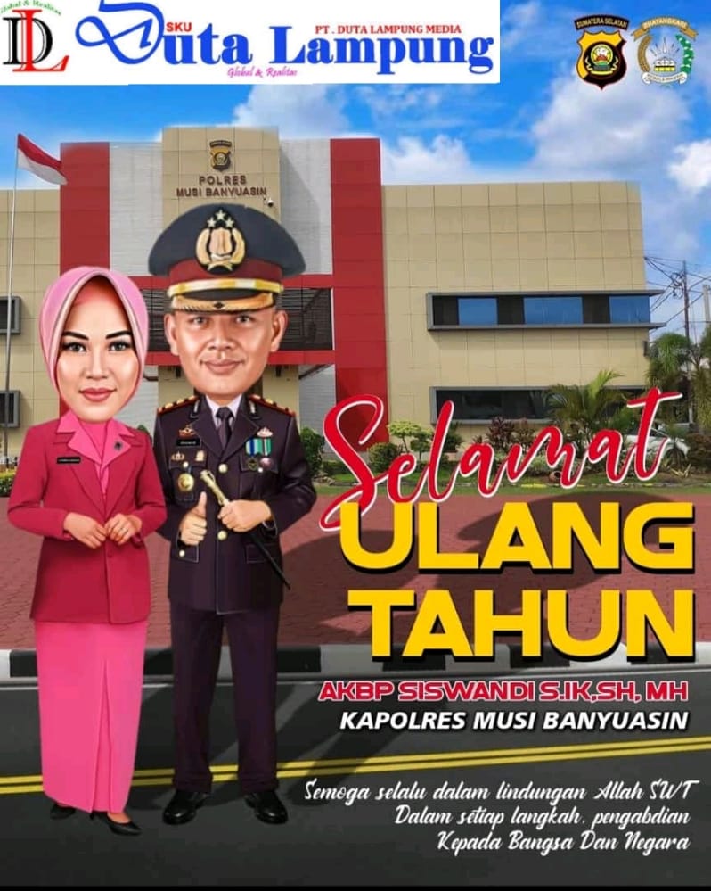 Musi Banyuasin, Sumsel (Duta Lampung Online) — Tepatnya pada hari ini tanggal 11 oktober 2022 adalah hari istimewah nya untuk Kapolres Musi Banyuasin AKBP Siswandi S.IK SH MH genap berusia 44 tahun.Di hari ulang tahun nya bergulir ucapan ultah dari berbagai instansi tak tinggal juga ucapan dari jajaran pimpinan redaksi dan staff Media cetak dan online penaberlian.com Sumsel kepada Kapolres Siswandi.