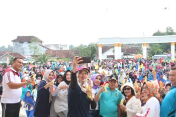 Roadshow kali ini, Nunik juga melakukan senam Lampung Berjaya bersama masyarakat Kab. Pesawaran kemudian dilanjutkan dengan peninjauan pameran serta pasar murah dan makan buah bersama.